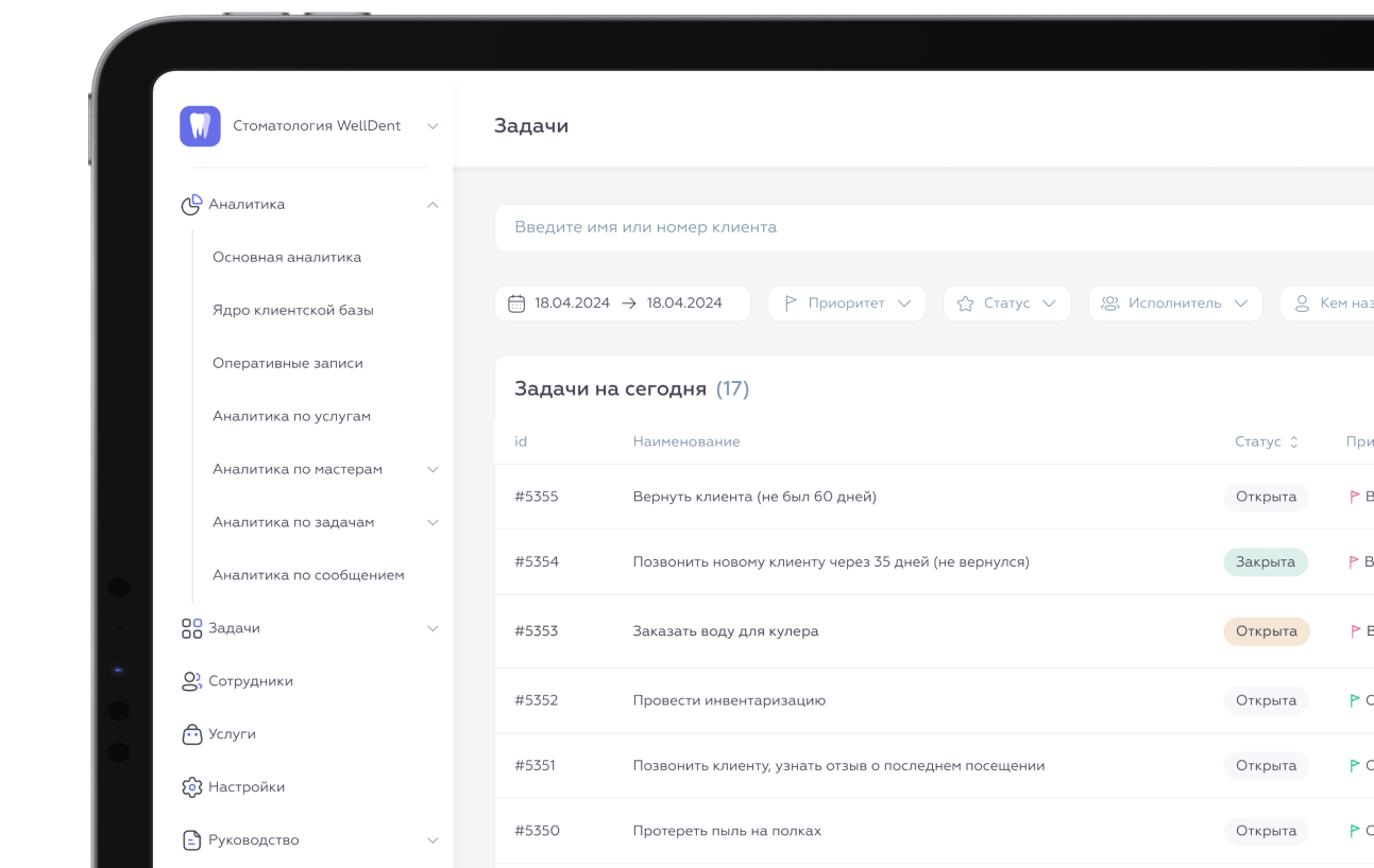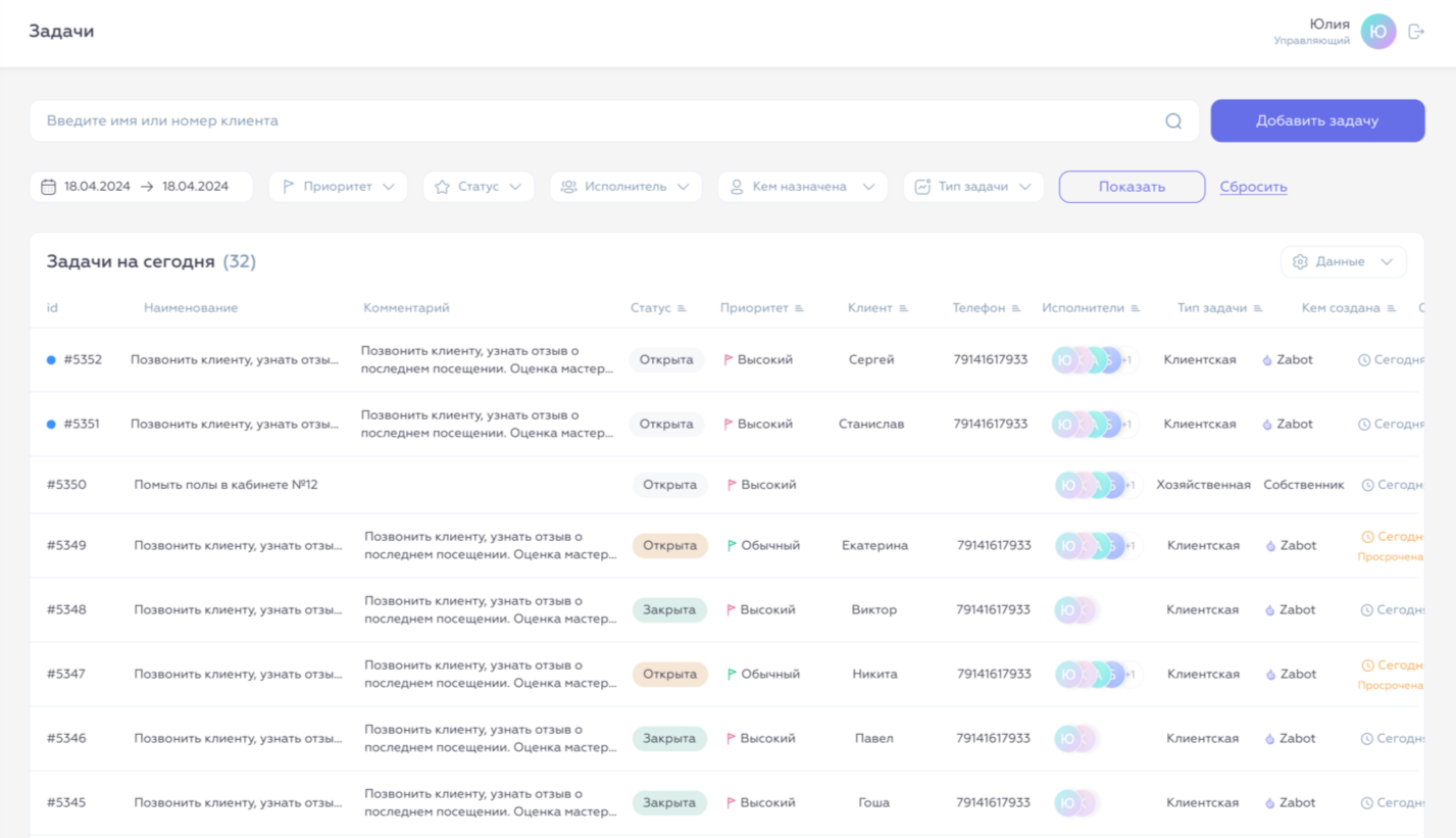 Medata сама поставит задачи администраторам, напомнит, что нужно сделать сегодня, каких клиентов обзвонить